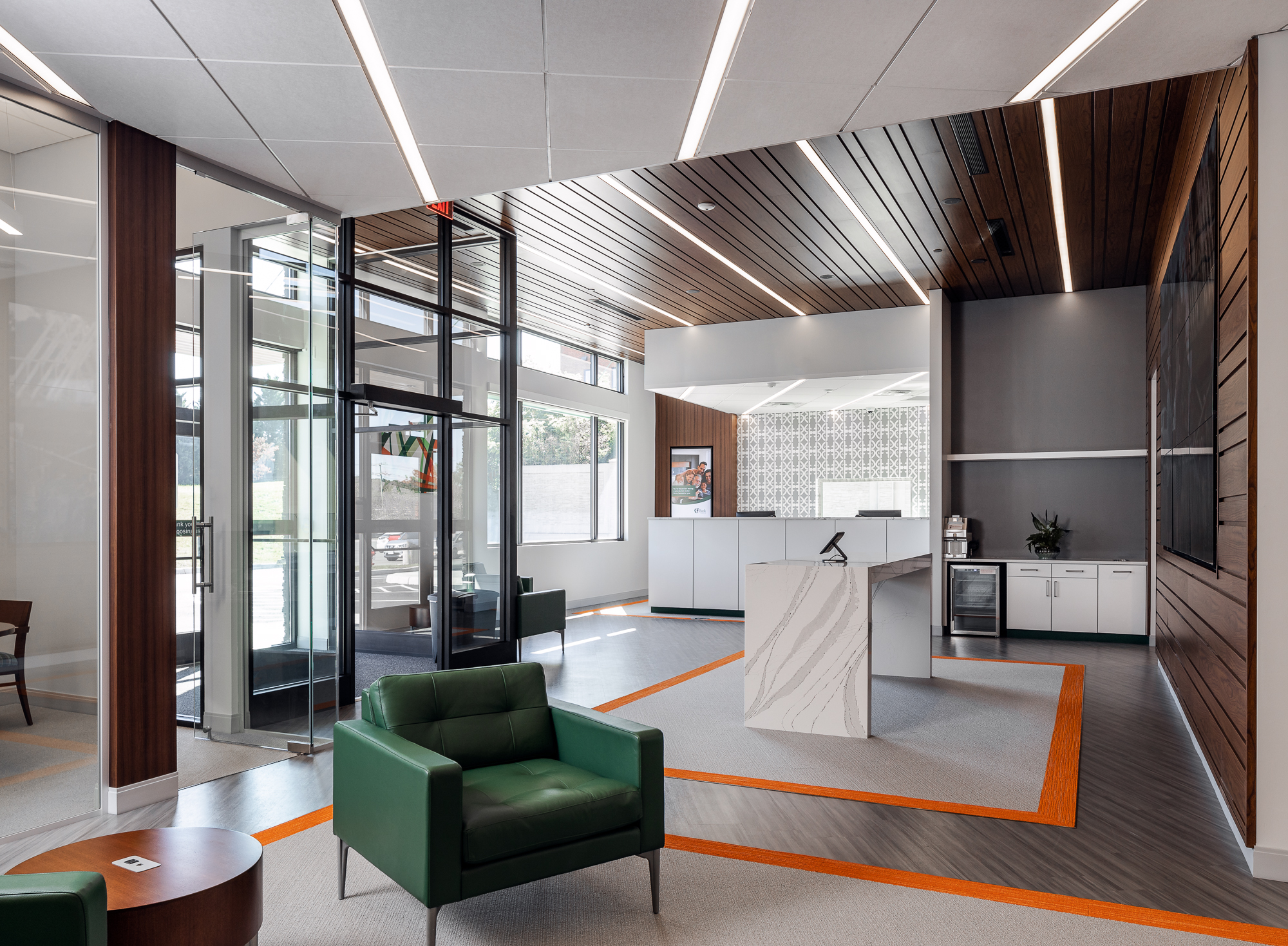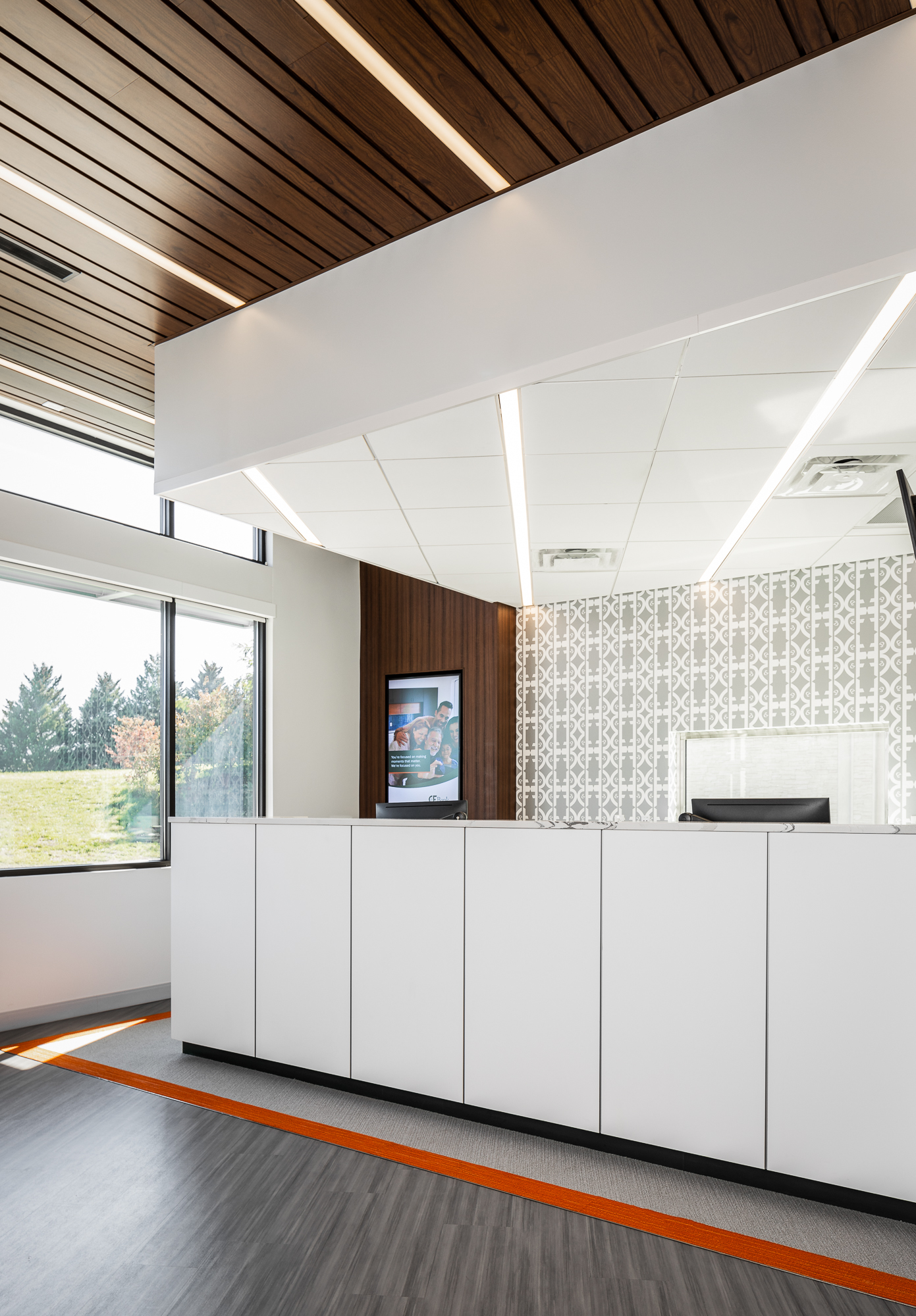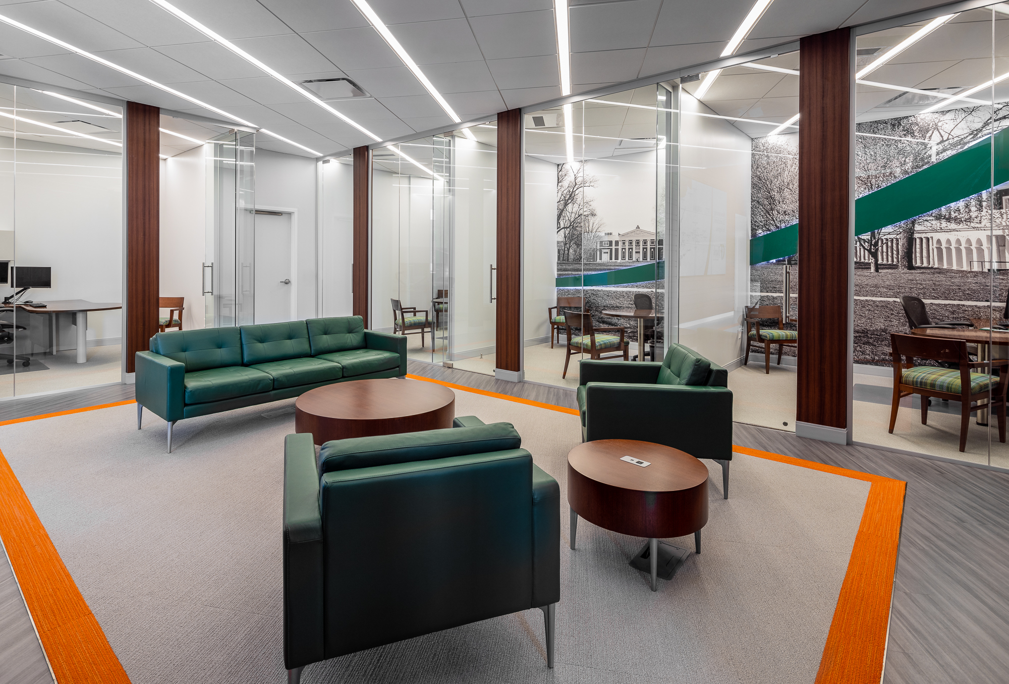 Charlottesville was selected as the best location to start with, serving as a prototype for the new standardized design - a design that would be "kitted", scaled and rolled out to the other locations. In Charlottesville, La Macchia's team incorporated the new design into the architecture, fixtures, and furniture. Pops of brand colors were strategically placed throughout the space while keeping the rest of the facility neutral, allowing the branch to evolve easily in the future. The thoughtful placement of digital displays allows for market-specific content that intensifies the brand experience and engages customers from the moment they enter.