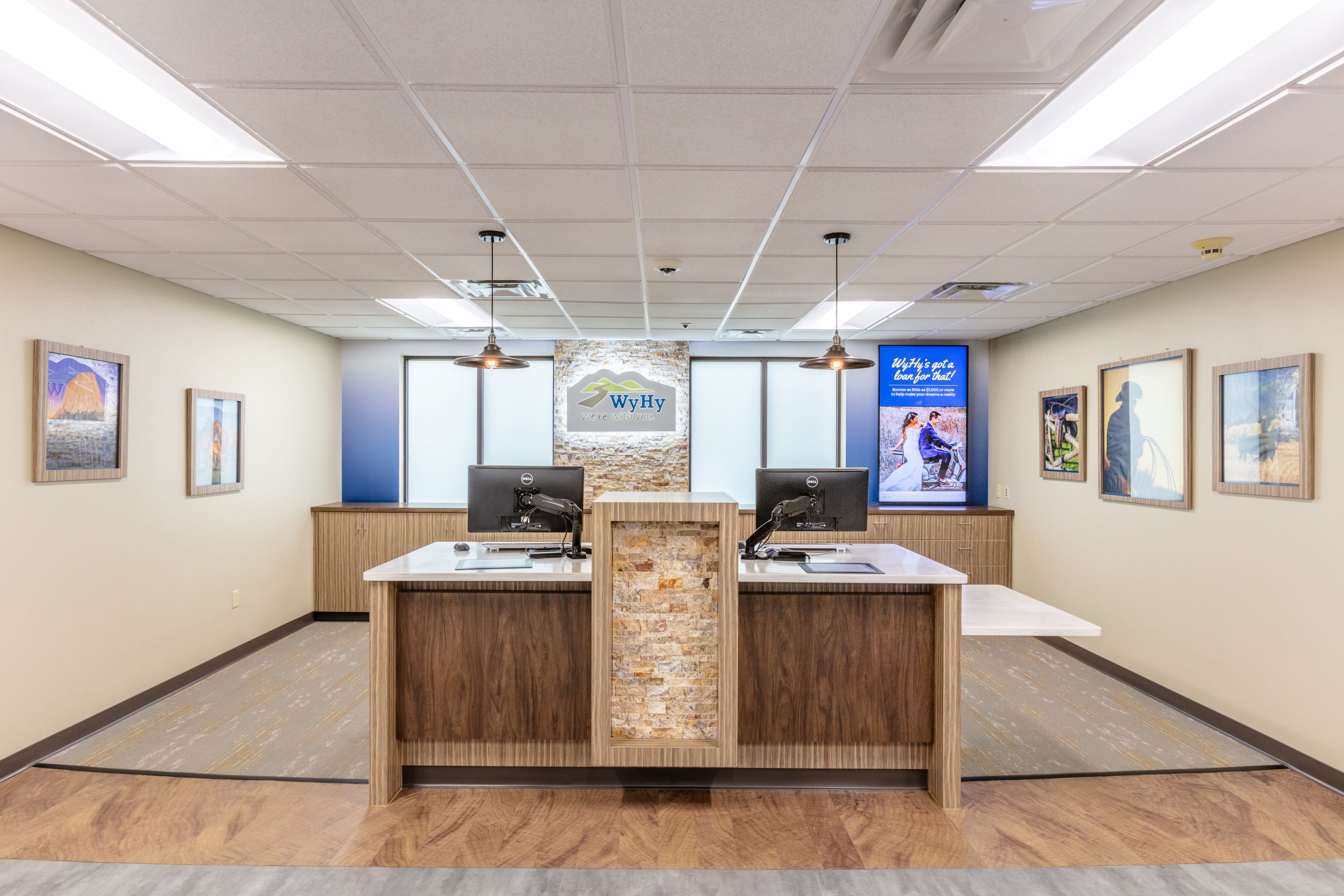 The Casper community is surrounded by nature, nestled at the foot of Casper mountain. The city is home to several museums and historical sites, many of which the design team wanted to feature within the space. Artwork that spoke not only to WyHy’s brand, but also the culture of Casper was applied throughout the branch to unify the two touchpoints. To further express that culture, designers used various décor pieces to bring out the local, historical, and scenic imagery – making it different than what members would see in Cheyenne.