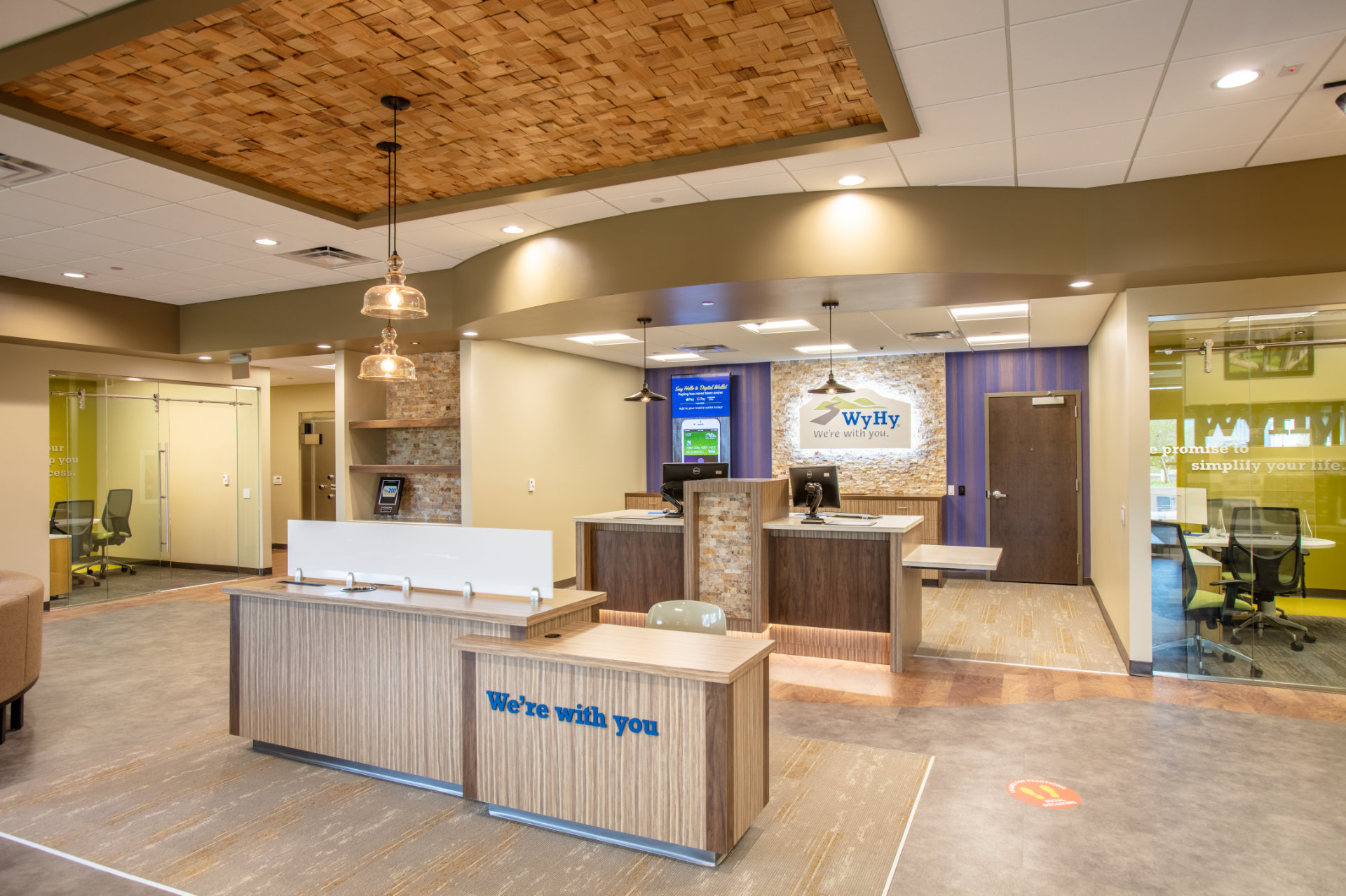 As an investment in their future, WyHy Federal Credit Union worked with La Macchia Group to take on two simultaneous live branch renovations, choosing to continue serving members while work happened. As a smaller project than their Cheyenne branch two and a half hours south, the member service area of their Casper branch needed to reflect the credit union's brand but connect with a slightly different target market. La Macchia Group’s design team studied both markets; research indicated that simple, yet unique details would set the tone for the Casper space and reflect the personality of the people who work and visit there.